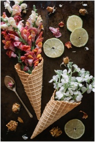 Flowers in waffle cones with citrus slices create