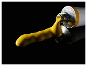 Illuminated yellow 'HAPPY' sign displayed vertical