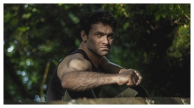 Man enjoying freedom by jumping into the ocean fro