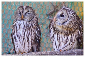 A Eurasian Pygmy Owl perched on a branch in a dark