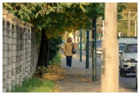 A woman taking photos in an autumn forest, perfect