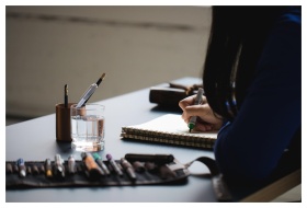 Calligraphy Writing Woman Pen