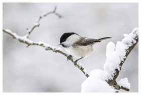 Willow Tit Snow Branch Perched