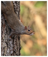 Gray squirrel perched on a rock enjoying a nut. Ca