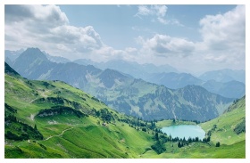 An expansive view of verdant mountains and valleys