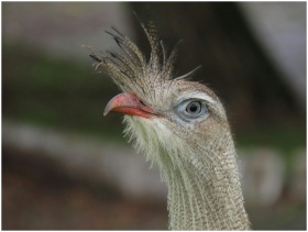 A detailed close-up of a red-legged seriema showcasing its unique features.