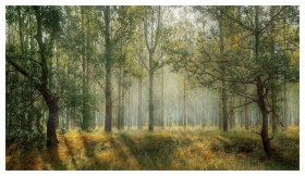 A moody, foggy forest scene capturing the essence
