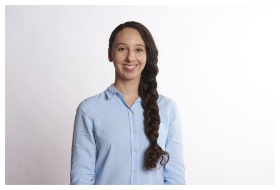 Portrait of a young woman smiling outdoors in a li