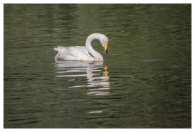 A tranquil winter scene featuring a swan and ducks