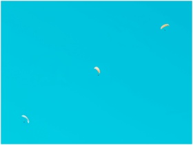 Two paragliders enjoying a clear sky adventure, sy