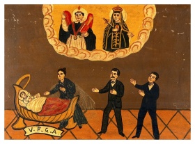 Two men woman praying health