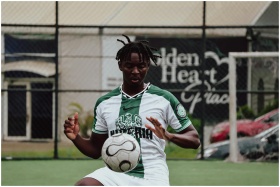 Young male soccer player on an outdoor field skill