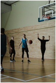 Group of young basketball players practicing on an