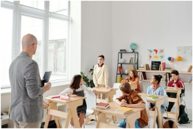 A teacher conducting a lesson in a diverse, engagi