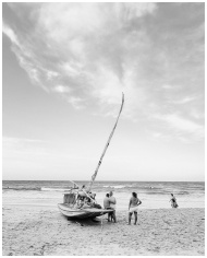 Serene beach scene with a fishing boat at Canoa Qu