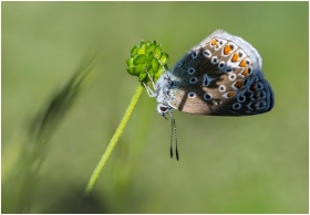 Detailed view of a Brown Argus Butterfly perched o