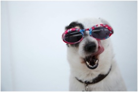 Adorable Jack Russell Terrier sporting pink sungla