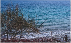 A beautiful seaside view in İzmir, Türkiye, featuring a peaceful winter beach and clear blue waters.
