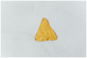 Close-up of a single crunchy tortilla chip on a mi