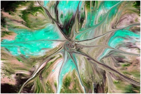 Vivid abstract fluid art in teal and earth tones c