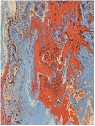 Dynamic fluid painting with swirling red and blue patterns for artistic backgrounds.