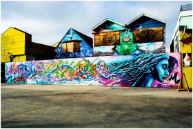 Colorful graffiti mural on a street wall in Los An