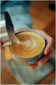 Close-up of a barista creating latte art in a cozy