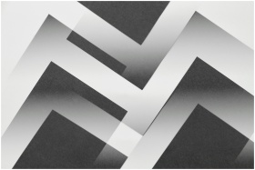 High-contrast geometric abstract design featuring black and white zigzag patterns.