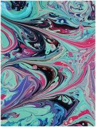 Top view of bright colors of green black pink purple mixed into composition