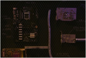 A close-up view of a motherboard and electronic co