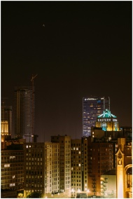 Captivating cityscape featuring illuminated Eastern Building at night.