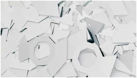 Explore the complex interplay of white geometric shapes in a seamless abstract pattern.