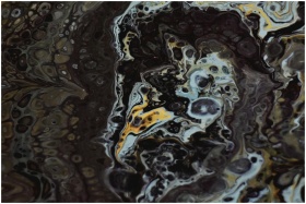 Dynamic abstract painting with fluid patterns and bold highlights, showcasing vivid contrasts.