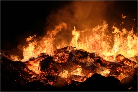 A vibrant and intense fire blazing against a dark