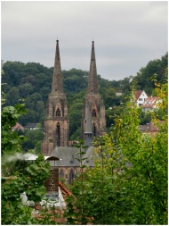 Twin church spires overlook Marburg's scenic lands