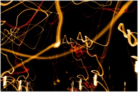 Engaging abstract image of vibrant light trails creating a dynamic pattern on a black background.
