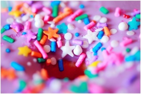A vibrant close-up of a donut with colorful star a