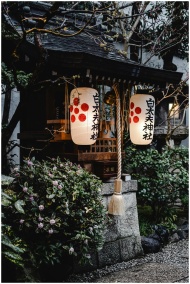Illuminated Japanese lanterns casting a warm glow