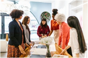 A diverse group of women engage in a business meet
