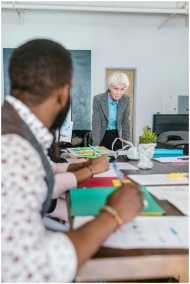 Diverse group of entrepreneurs brainstorming in a