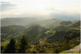 Breathtaking sunset over the rolling hills of Crespano del Grappa in Veneto, Italy, showcasing nature's serene beauty.