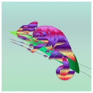 Vibrant geometric design with pastel hues and refl