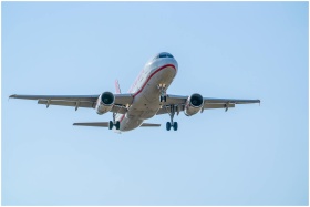 An Airbus A320 in flight descending over Manises,