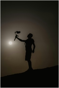 Silhouette of a man with camera, capturing a sceni