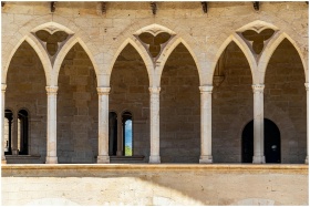 Stone gothic arches at Bellver Castle, a landmark