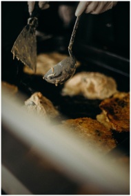 A close-up view of Korean street food being prepar