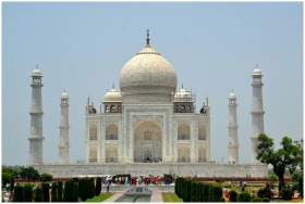 Majestic view of the Taj Mahal with tourists, show