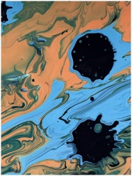 Dynamic abstract fluid painting featuring swirling