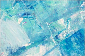Close-up of a vibrant, textured abstract acrylic painting featuring dynamic blue brushstrokes and textures.