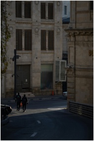 Two people walk along a quiet street in Baku's old